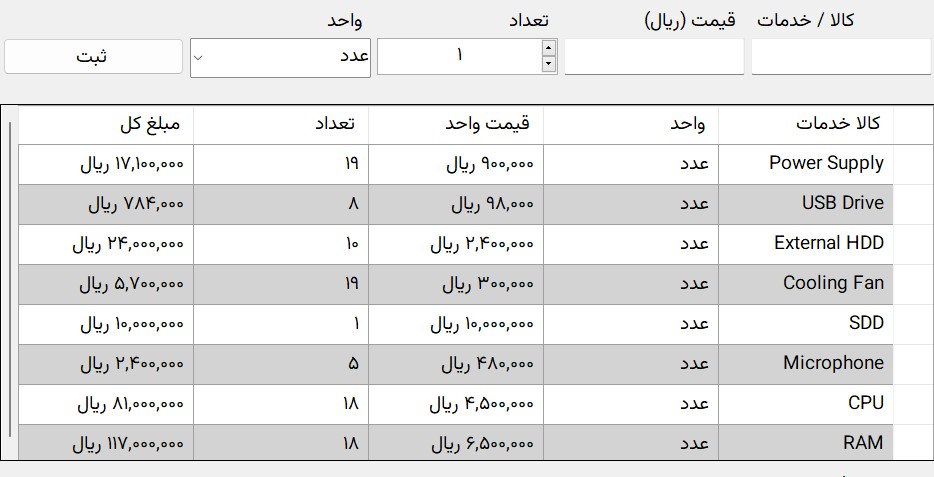 ثبت فاکتورهای کالا و خدمات